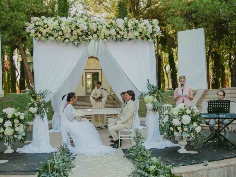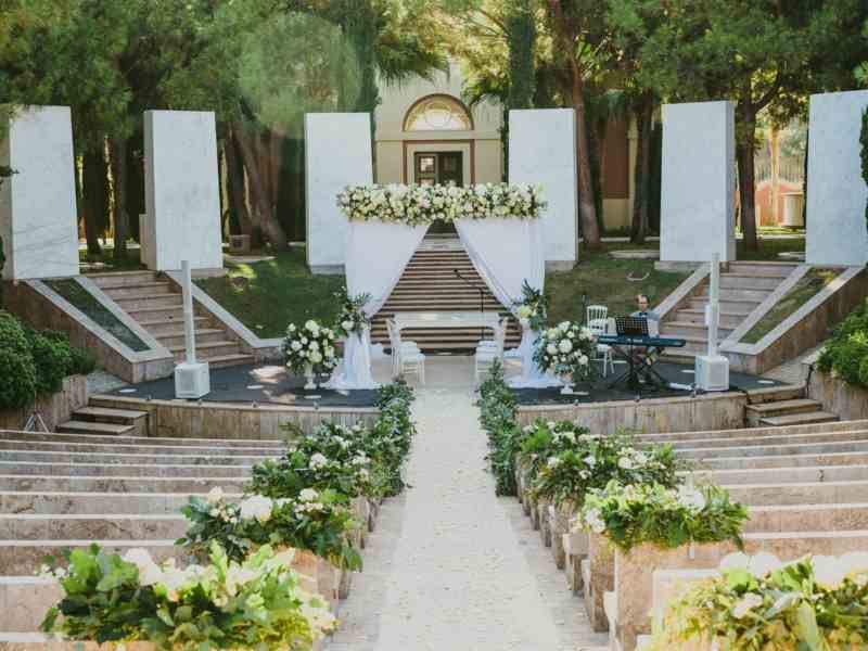 The big wedding day arrived on a warm summer day in September. The professional photographer The Love Hunter @the_love_hunters made some stunning pictures to remember the best moments of this amazing wedding day . The impressive amfitheater and the altar was decorated with overwhelming flower decoration creating a fairytale wedding mood. The priest was invided from Norway a friend of Celinas family, performed a intimate ceremony for the beautiful couple, and a near friend of the family sang songs chosen by Celina and Ivar Andre during the wedding ceremony. “Love was really in the air!”