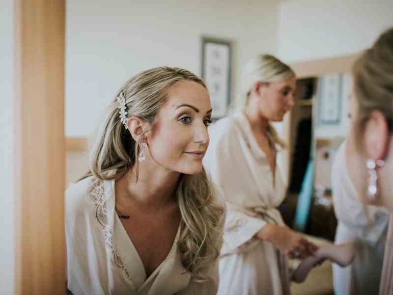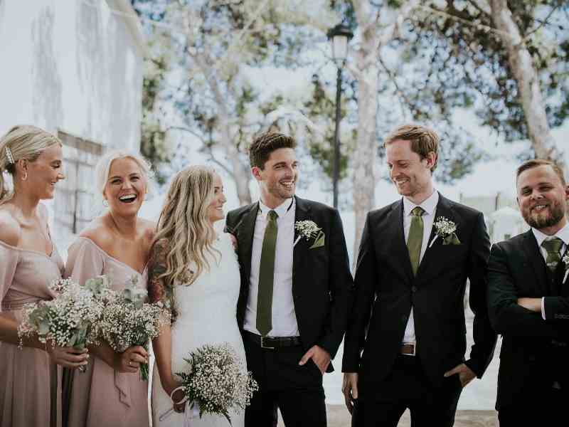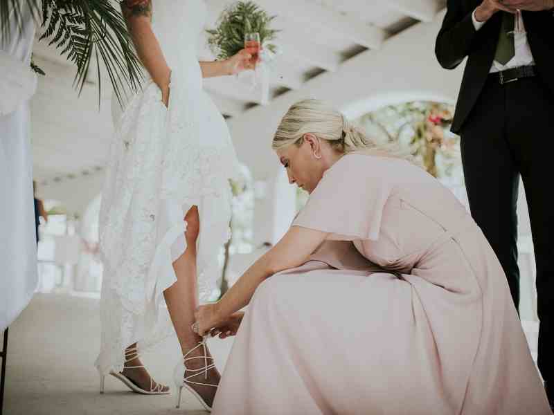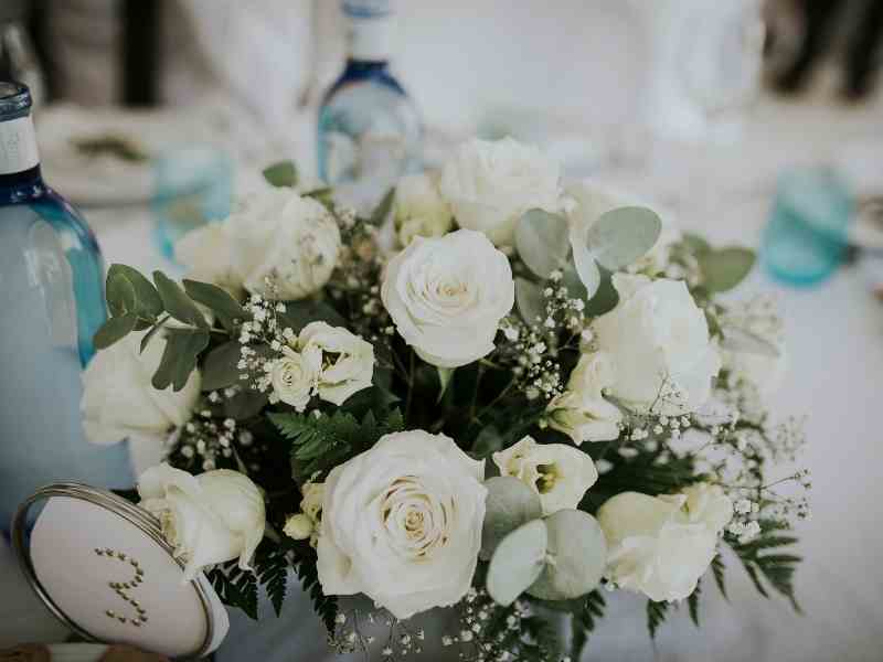 The big wedding day  arrived  on a warm summer day in June.  The professional photographer Marina Luna @marinamluna  went to both the places where Inger and Jarle were dressing with the bride mades and best mans and she captures so really good wedding moments. The elegant Arch , with a perfect sea blue  background, was  decorated in a  very upto date flower decoration in white and green  which was the chosen theme colors together with gold  through out the wedding.  All the guests and families were waiting  at the altar when Inger came with a stunning wedding dress together with her father.