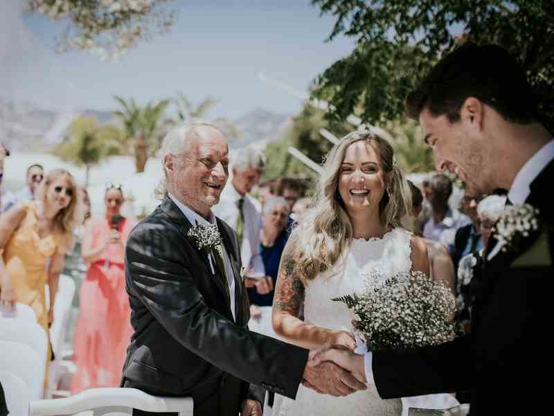 After the ceremony if was time for some relaxed and fun wedding photografy, the bride and groom together with some of the brides maide and best men to the village of Benalmadena while the guests had refreshing drinks at the chill out restaurant. Upon return  some the the most required family photos was required  before they started with an  increadable wedding dinner, starting with same delighful tapas. During the dinner as always in Norwegian weddings it was a lot of emotional speaches with both tears, and laughter and some increadable songs by the friends of the brides. And finally this  amazing wedding day  was finalized with a stunning disco through late hours.